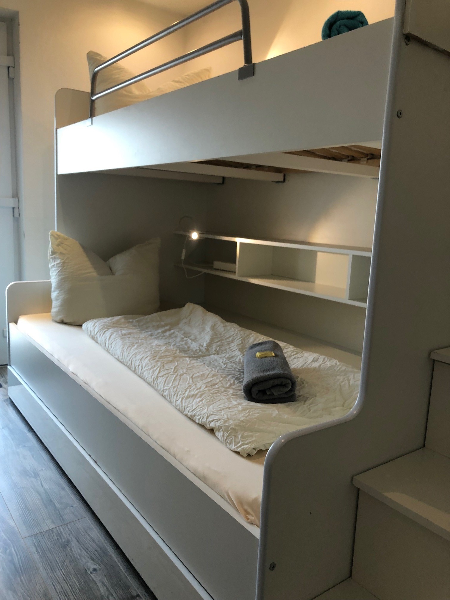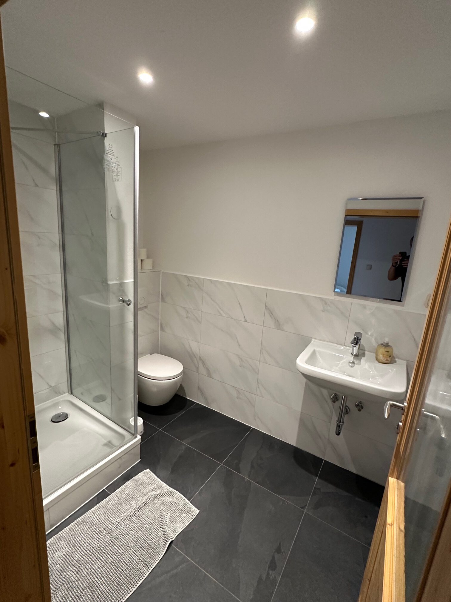 Die Unterkunft wurde 2019 komplett neu erstellt. Sie haben die Unterkunft (bis zu 19 Personen, 82m²) komplett für sich allein. Es gibt 2 Schlafzimmer, 3 Bäder , 2 WC und eine große Küche mit Aufenthaltsbereich.